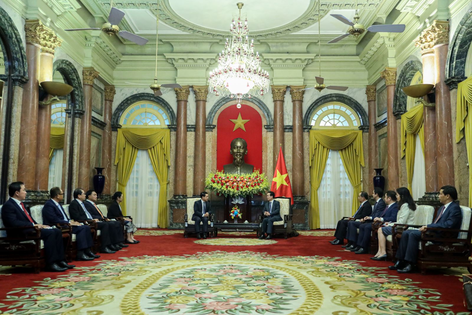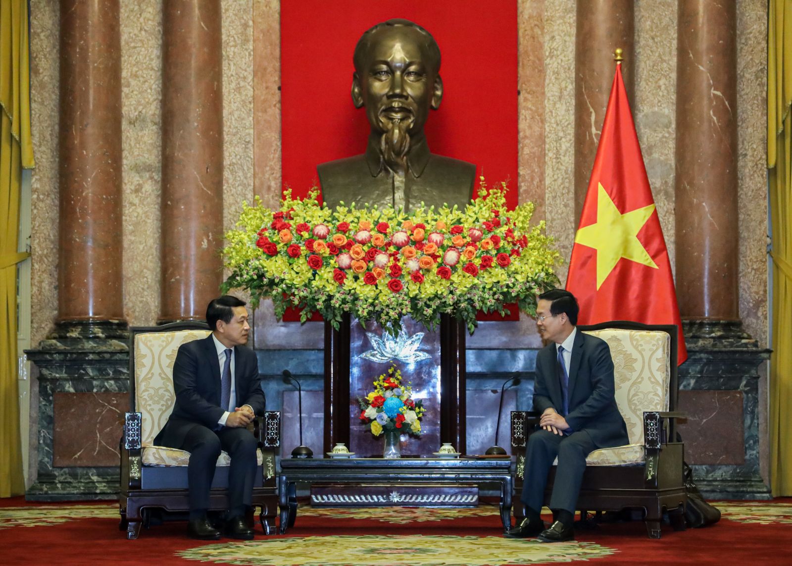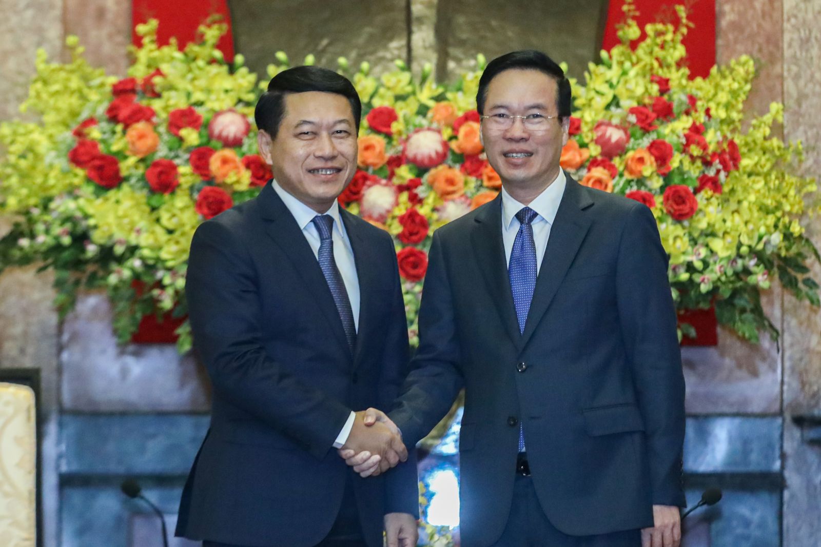Chủ tịch nước Võ Văn Thưởng tiếp Phó Thủ tướng, Bộ trưởng Ngoại giao Lào Saleumxay Kommasith. Ảnh: VPCTN
