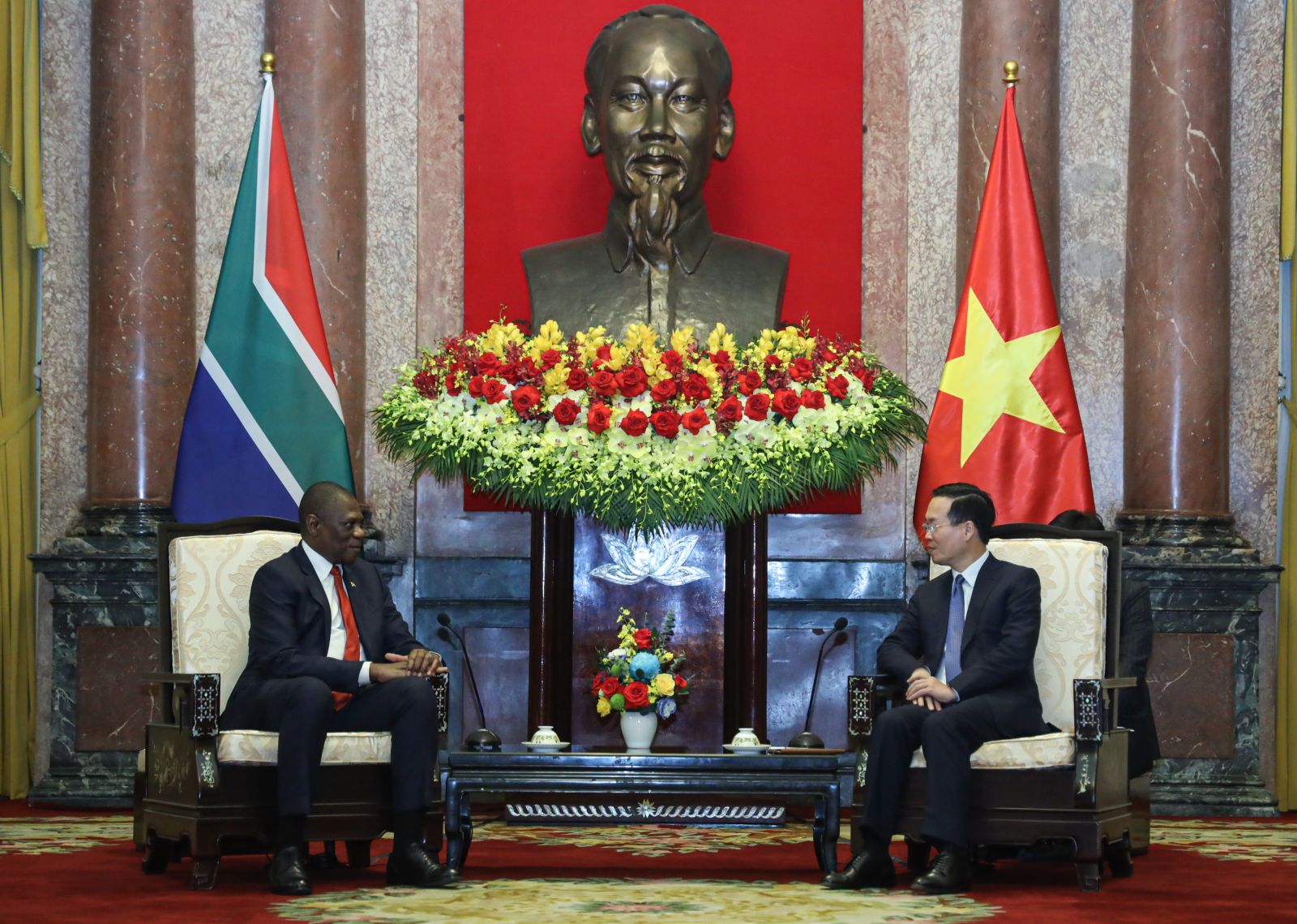 Chủ tịch nước Võ Văn Thưởng tiếp Phó Tổng thống Cộng hòa Nam Phi Paul Mashatile. Ảnh: VPCTN