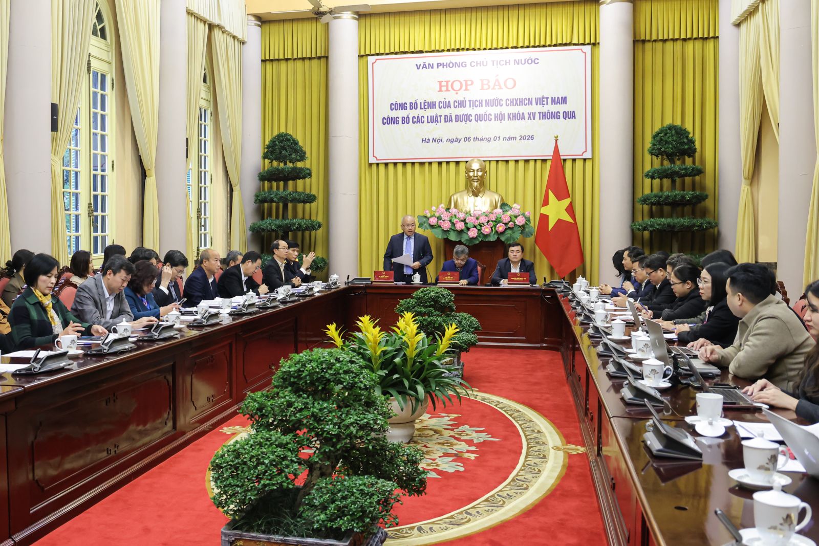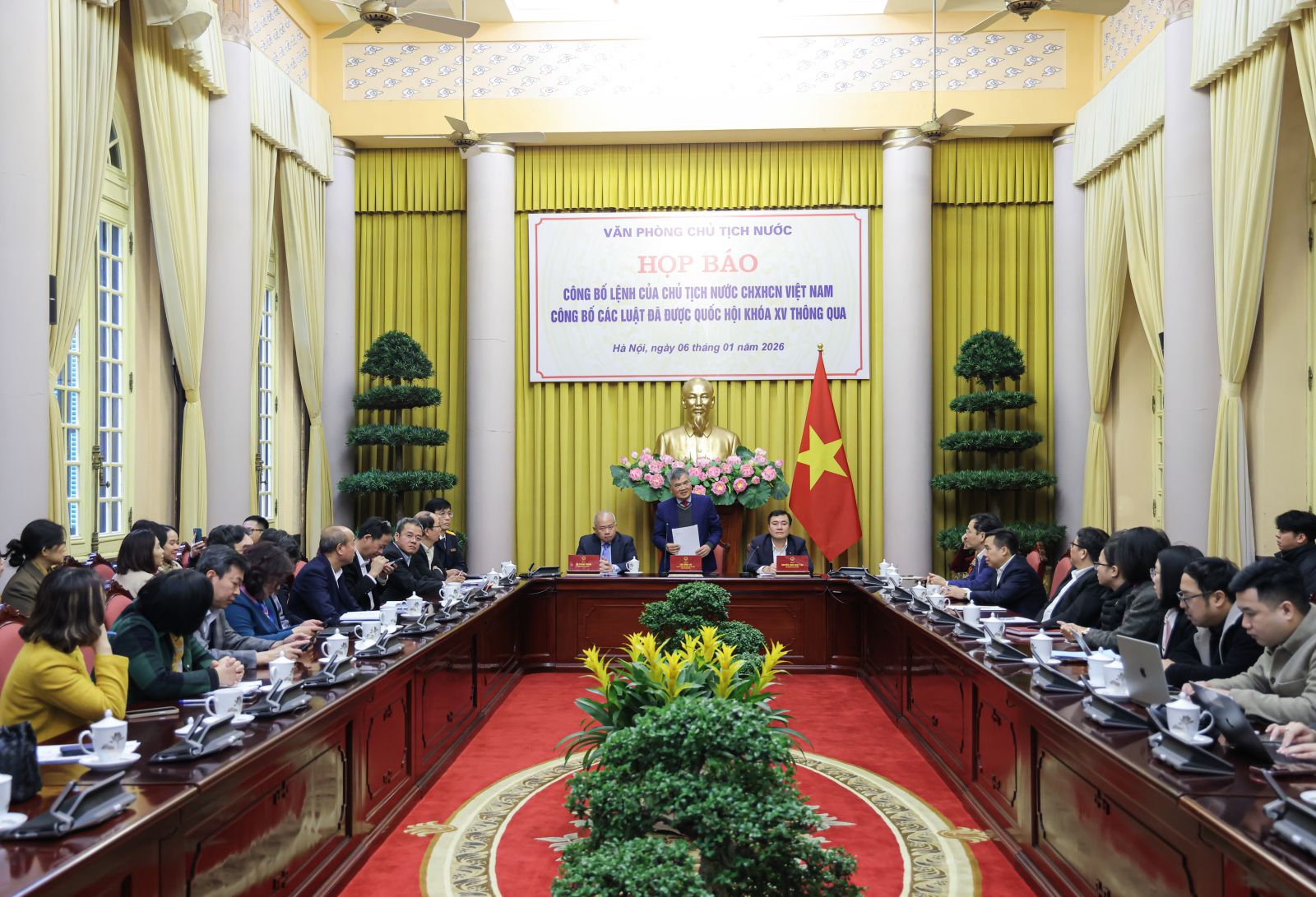Phó Chủ nhiệm Văn phòng Chủ tịch nước, Trợ lý Chủ tịch nước Cấn Đình Tài, chủ trì Họp báo.
