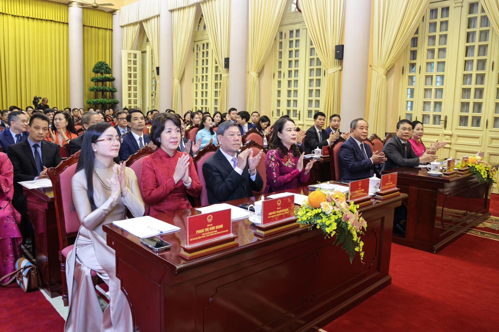 Phó Chủ tịch nước Võ Thị Ánh Xuân cùng các đại biểu dự Đại hội Thi đua yêu nước Văn phòng Chủ tịch nước lần thứ IV. Ảnh: VPCTN
