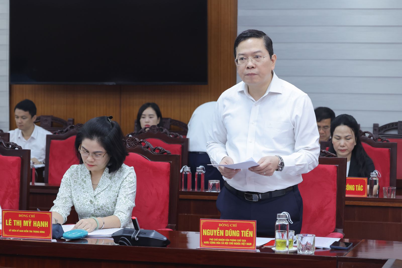 Đồng chí Nguyễn Dũng Tiến, Phó Chủ nhiệm Văn phòng Chủ tịch nước, Trợ lý Phó Chủ tịch nước, Phó trưởng Đoàn kiểm tra, giám sát số 29 của Bộ Chính trị, Ban Bí thư phát biểu. Ảnh: VPCTN