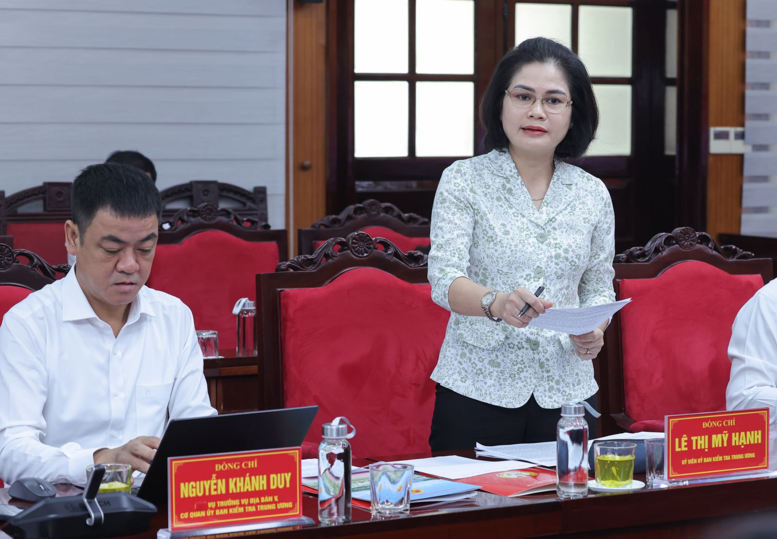Đồng chí Lê Thị Mỹ Hạnh, Ủy viên Ủy ban Kiểm tra Trung ương, Phó rưởng Đoàn kiểm tra, giám sát số 29 của Bộ Chính trị, Ban Bí thư phát biểu. Ảnh: VPCTN