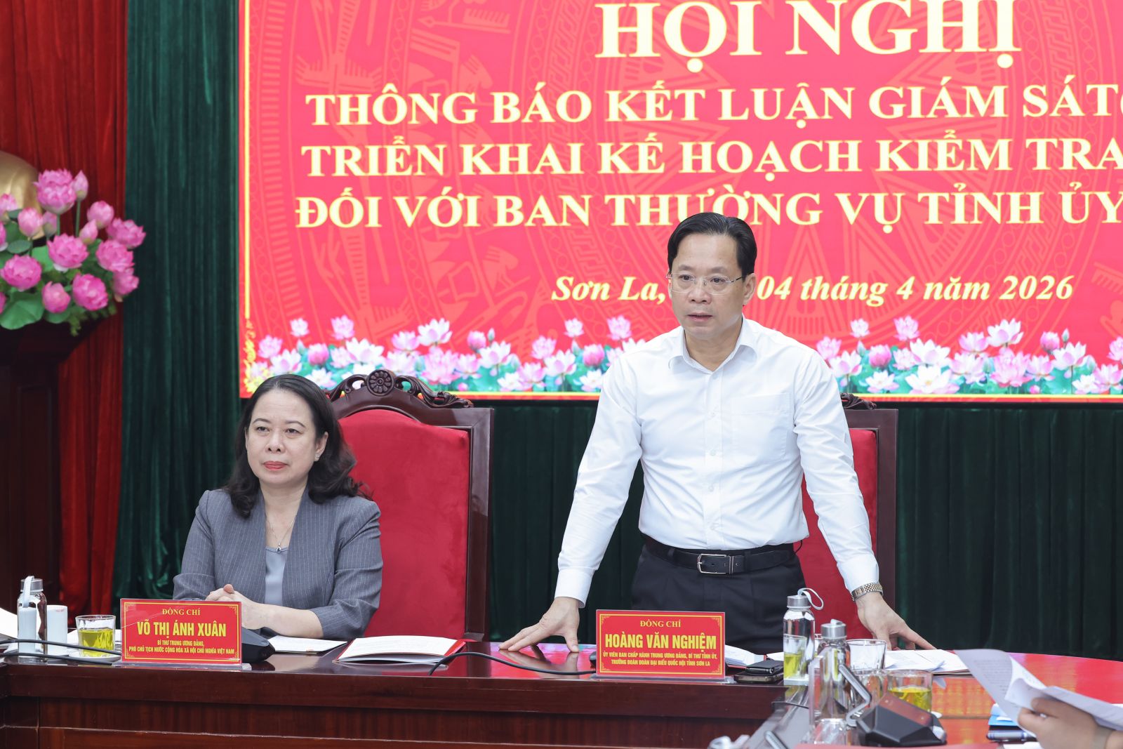 Đại diện Đoàn kiểm tra, giám sát đã thông báo Kết luận của Bộ Chính trị, Ban Bí thư kết quả giám sát (đợt 1) việc thực hiện Chỉ thị số 01-CT/TW ngày 23/1/2026 của Bộ Chính trị về nghiên cứu, học tập, quán triệt, tuyên truyền và triển khai thực hiện Nghị quyết Đại hội đại biểu toàn quốc lần thứ XIV; Chỉ thị số 46-CT/TW ngày 16/5/2025 của Bộ Chính trị về lãnh đạo cuộc bầu cử đại biểu Quốc hội khóa XVI và đại biểu HĐND các cấp nhiệm kỳ 2026 - 2031; kế hoạch kiểm tra (đợt 2) đối với Ban Thường vụ Tỉnh ủy Sơn La.