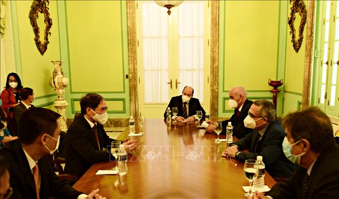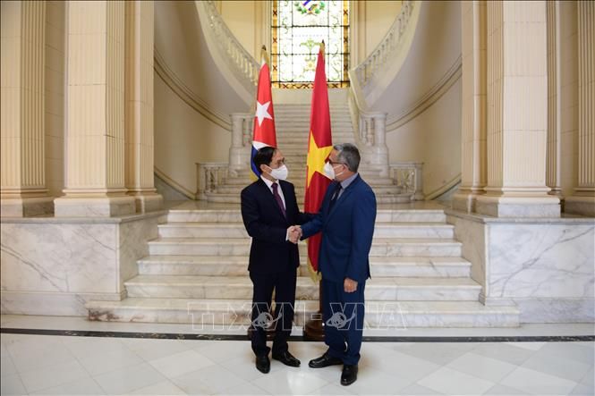 Bộ trưởng Ngoại giao Bùi Thanh Sơn gặp song phương với Quyền Bộ trưởng Ngoại giao Cuba Marcelino Medina. Ảnh: TTXVN phát