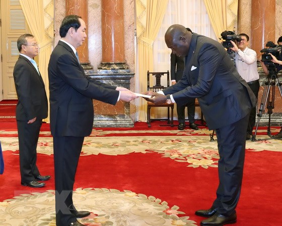 Đại sứ Đặc mệnh toàn quyền Cote d'Ivoire tại Việt Nam đến trình Quốc thư. (Ảnh: Nhan Sáng/TTXVN)