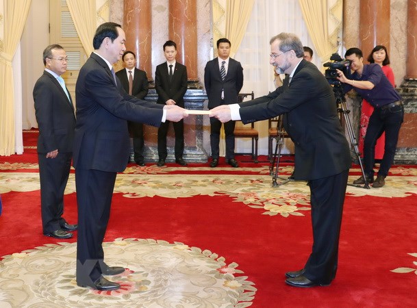 Đại sứ Đặc mệnh toàn quyền New Zealand tại Việt Nam sau nghi lễ trình Quốc thư. (Ảnh: Nhan Sáng/TTXVN)