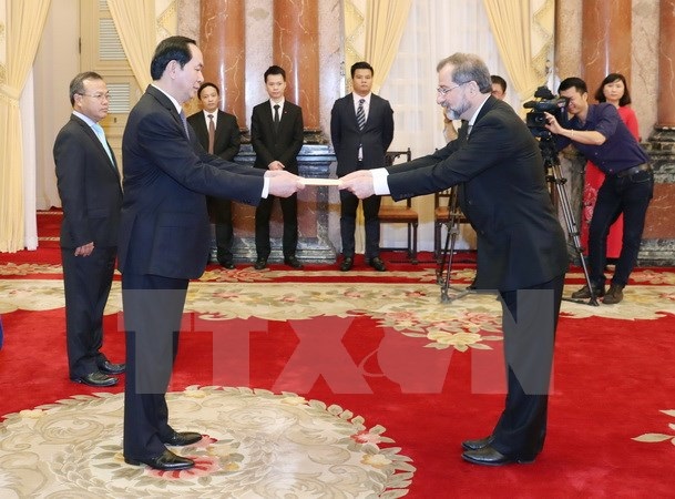 Sáng 11/1, tại Phủ Chủ tịch, Chủ tịch nước Trần Đại Quang đã nhận Quốc thư của Đại sứ New Zealand Wendy Irene Matthews, Đại sứ Timor Leste Pascoela Barreto dos Santos, Đại sứ Cộng hòa Cote d'Ivoire Dosso Adama, Đại sứ Cộng hòa Rwanda Charles Kayonga, Đại sứ Slovenia Janez Premoze nhân dịp mới được bổ nhiệm Đại sứ đặc mệnh toàn quyền tại Việt Nam.