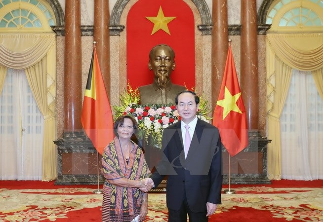 Chào mừng Đại sứ Timor Leste Pascoela Barreto dos Santos sang nhận nhiệm vụ tại Việt Nam, Chủ tịch nước Trần Đại Quang khẳng định chính sách của Việt Nam luôn coi trọng và mong muốn tăng cường quan hệ với Timor Leste trong khuôn khổ song phương, cũng như trên các diễn đàn đa phương.