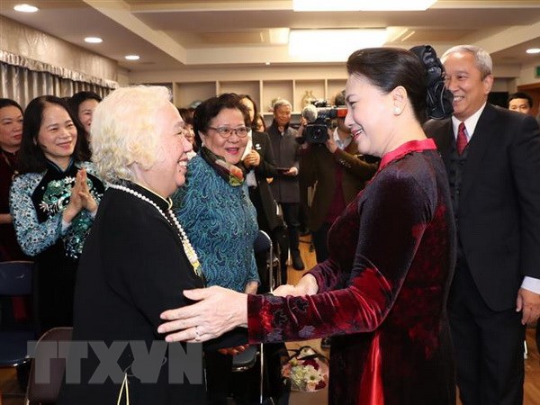 Cộng đồng người Việt Nam là cộng đồng người nước ngoài lớn thứ hai tại Hàn Quốc. Qua nghe báo cáo, cũng như khi tiếp xúc với kiều bào, Chủ tịch Quốc hội đánh giá bà con có cuộc sống ngày càng ổn định và hòa nhập tốt với xã hội sở tại. Bà con đã có nhiều hoạt động thiết thực hướng về quê hương qua việc tổ chức các hoạt động tri ân anh hùng liệt sỹ, hưởng ứng các hoạt động an sinh, từ thiện trong nước, thành lập Quỹ vì chủ quyền biển đảo Việt Nam (bước đầu đạt kết quả như lắp đặt hệ thống lấy nước ngọt từ độ ẩm không khí, giàn rau tiết kiệm nước cho quân dân Trường Sa)... Những hoạt động này đã cho thấy rõ sự gắn kết cộng đồng của những người Việt Nam ở Hàn Quốc. Về trường hợp trẻ em có bố hoặc mẹ là người Việt Nam, được sinh ra ở nước ngoài nhưng trở về Việt Nam sinh sống mà chưa có giấy khai sinh, Chủ tịch Quốc hội nhấn mạnh Quốc hội và Chính phủ quan tâm và sát sao chỉ đạo thực hiện để bảo đảm mọi trẻ em khi đủ 6 tuổi đều được đến trường... Chủ tịch Quốc hội Nguyễn Thị Kim Ngân bày tỏ mong muốn cộng đồng người Việt Nam tại Hàn Quốc tiếp tục tuân thủ nghiêm pháp luật nước sở tại; đoàn kết, đùm bọc, giúp đỡ lẫn nhau những lúc khó khăn và cùng nhau phát triển; coi Đại sứ quán Việt Nam tại Hàn Quốc là mái nhà chung. Đại sứ Việt Nam và Đại sứ quán Việt Nam tại Hàn Quốc tiếp tục thực hiện tốt công tác bảo hộ công dân.