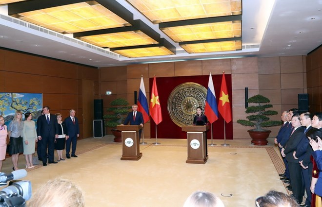 Chủ tịch Quốc hội Nguyễn Thị Kim Ngân và Chủ tịch Duma Quốc gia Nga V.V.Volodin vui mừng nhận thấy, quan hệ chính trị giữa hai nước không ngừng được củng cố thông qua việc duy trì thường xuyên trao đổi đoàn các cấp, đặc biệt là cấp cao, theo các kênh Đảng, Nhà nước cũng như giữa địa phương, doanh nghiệp và tổ chức xã hội hai nước; bày tỏ tin tưởng cùng với chuyến thăm Liên bang Nga của Tổng Bí thư Nguyễn Phú Trọng vào tháng 9/2018, chuyến thăm Việt Nam của Thủ tướng Nga D.Medvedev vào tháng 11/2018 và chuyến thăm Việt Nam lần này của Chủ tịch Duma Quốc gia Nga, sẽ tạo động lực mạnh mẽ thúc đẩy hợp tác song phương trên tất cả các lĩnh vực.
