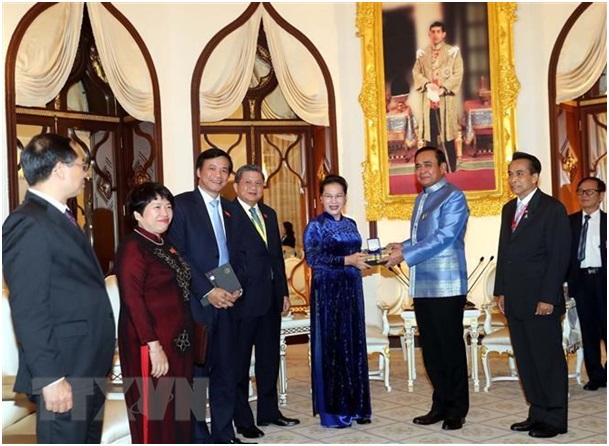 Thủ tướng Prayuth Chan-ocha bày tỏ vui mừng chào đón Chủ tịch Quốc hội Nguyễn Thị Kim Ngân thăm chính thức Thái Lan và trân trọng gửi lời thăm hỏi đến Thủ tướng Chính phủ Nguyễn Xuân Phúc.