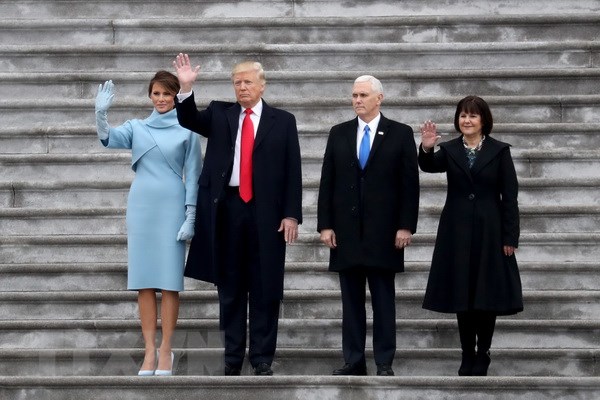 Tân Tổng thống Donald Trump (thứ hai, trái), tân Phó Tổng thống Mike Pence (thứ hai, phải) sau lễ tuyên thệ nhậm chức tại Washington, DC. (Nguồn: EPA/TTXVN)