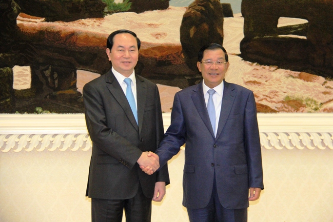 Chủ tịch nước Trần Đại Quang đã và Thủ tướng HunSen - ảnh Tấn Đức