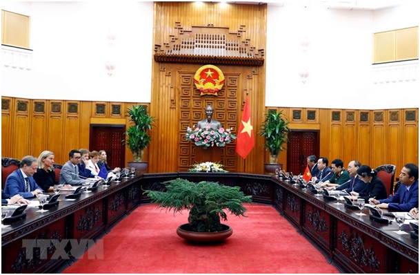 Tại buổi tiếp, thay mặt Chính phủ Việt Nam, Thủ tướng Nguyễn Xuân Phúc nhiệt liệt hoan nghênh chuyến thăm của Phó Chủ tịch Ủy ban châu Âu; cảm ơn và đánh giá cao đóng góp của bà trong thúc đẩy quan hệ hai nước thời gian qua, đặc biệt là Hiệp định Thương mại tự do Việt Nam-EU (EVFTA) và Hiệp Bảo hộ Đầu tư (EVIPA) vừa được hai bên ký ngày 30/6 vừa qua. Đây là dấu mốc quan trọng có ý nghĩa lịch sử của hai bên.