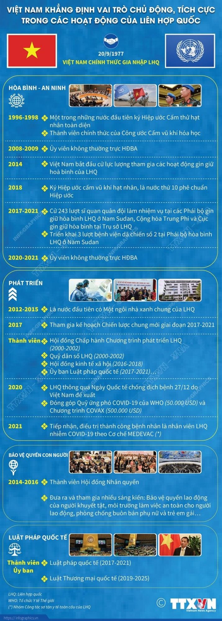 Với những đóng góp tích cực, thực chất tại các cơ quan của LHQ, Việt Nam đã cho thấy những cam kết mạnh mẽ của một quốc gia luôn tích cực nỗ lực xây dựng lòng tin và đối thoại, làm cầu nối tìm kiếm giải pháp hòa bình cho các cuộc xung đột trên thế giới thông qua Hiến chương LHQ, luật pháp quốc tế và sự hợp tác ngày càng chặt chẽ giữa LHQ và các tổ chức cũng như các cơ chế đa phương. Việc Chủ tịch nước Nguyễn Xuân Phúc tham dự khóa họp 76 ĐHĐ LHQ tiếp tục chuyển đi thông điệp về một Việt Nam đã, đang và sẽ luôn là thành viên chủ động, tích cực, có trách nhiệm của cộng đồng quốc tế.