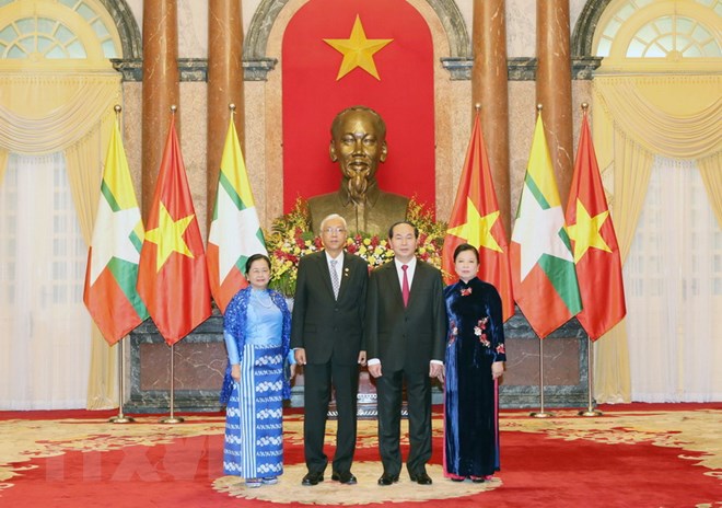 Chủ tịch nước khẳng định, chuyến thăm cấp Nhà nước của Ngài Tổng thống Htin Kyaw tới Việt Nam lần này là một sự kiện hết sức quan trọng, mở ra một giai đoạn phát triển mới cho quan hệ hữu nghị truyền thống và hợp tác nhiều mặt giữa Việt Nam và Myanmar sau hơn 40 năm kể từ khi hai nước chính thức thiết lập quan hệ ngoại giao.