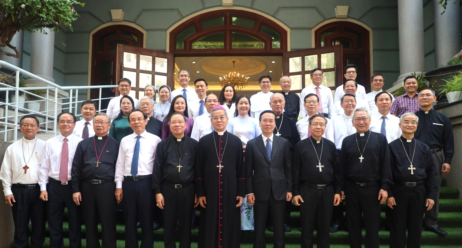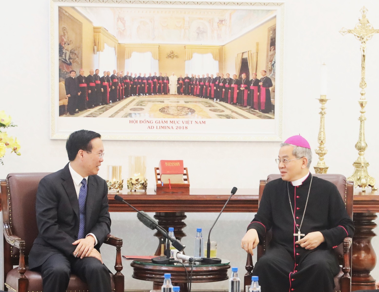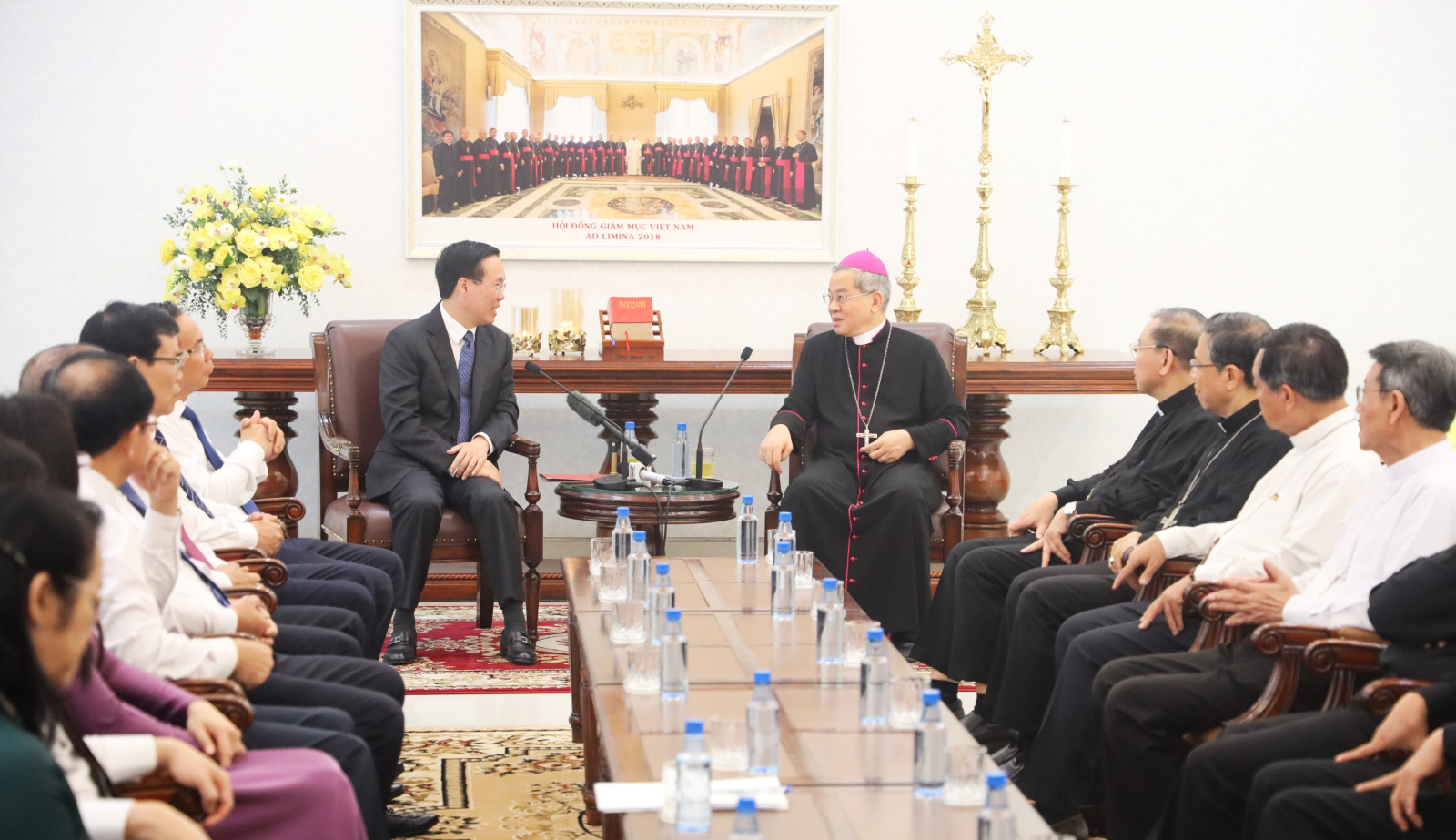 Chủ tịch nước Võ Văn Thưởng thăm và làm việc với Hội đồng Giám mục Việt Nam. Ảnh: VPCTN