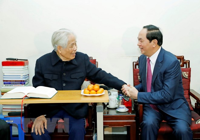 Chủ tịch nước Trần Đại Quang đã thông báo với nguyên Tổng Bí thư Đỗ Mười một số nét về tình hình của đất nước và những kết quả mà toàn Đảng, toàn dân, toàn quân ta đã đạt được trong năm 2016.
