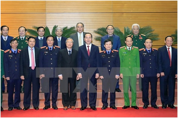 Chủ tịch nước Trần Đại Quang với các đại biểu.( Ảnh: Nhan Sáng/TTXVN)