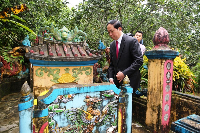 Chủ tịch nước Trần Đại Quang tưởng niệm tại mộ cụ Huỳnh Thúc Kháng - ảnh Tấn Đức