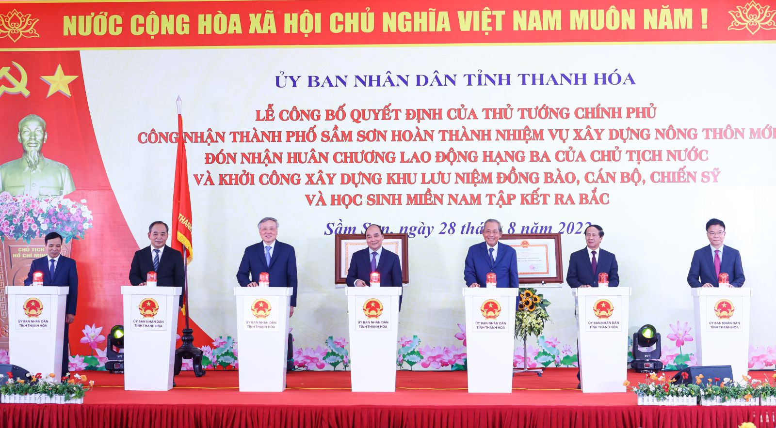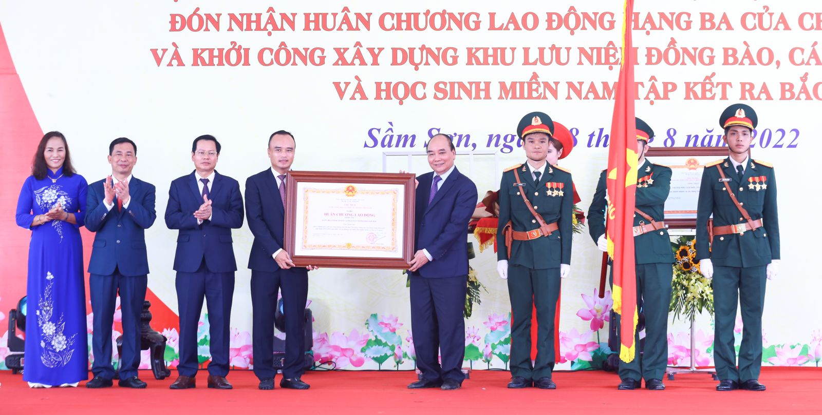 Chủ tịch nước Nguyễn Xuân Phúc đã trao Huân chương Lao động hạng Ba tặng Đảng bộ, chính quyền và nhân dân thành phố Sầm Sơn về thành tích xuất sắc xây dựng nông thôn mới giai đoạn 2016-2020.