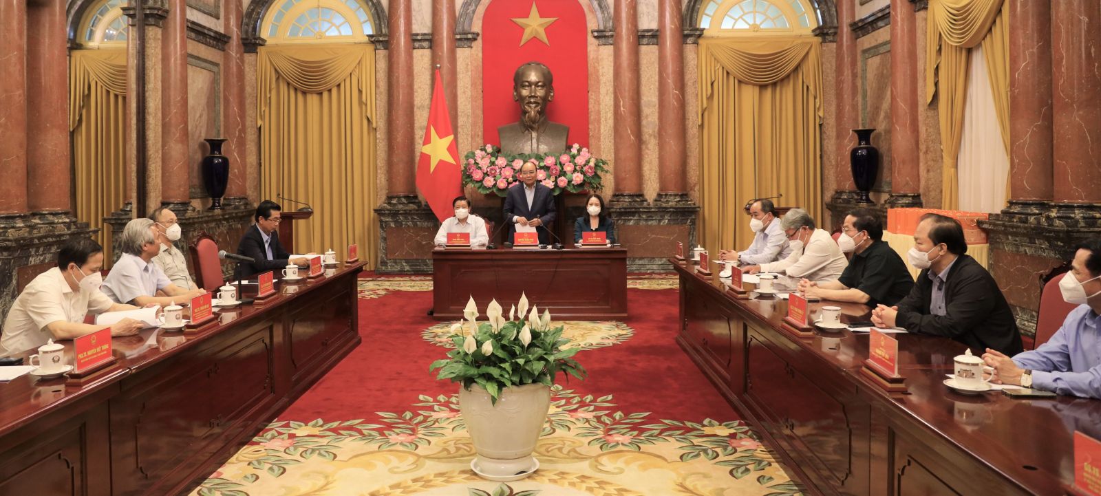 Phát biểu tại cuộc gặp mặt, thay mặt Ban Chỉ đạo, Chủ tịch nước Nguyễn Xuân Phúc ghi nhận, đánh giá cao tinh thần làm việc trách nhiệm, nhiệt huyết trong công tác của các chuyên gia, nhà khoa học, các thành viên Tổ Biên tập trong quá trình nghiên cứu, tham luận; tham gia xây dựng các dự thảo, văn kiện của Đề án.