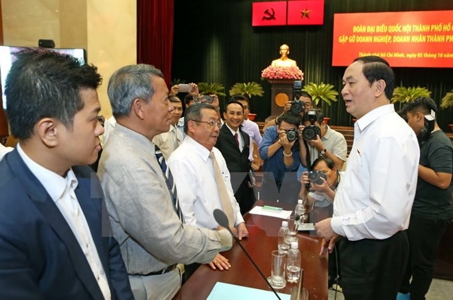 Chiều 3/10, tại Thành phố Hồ Chí Minh, Chủ tịch nước Trần Đại Quang, Đại biểu Quốc hội Thành phố Hồ Chí Minh đã chủ trì buổi gặp gỡ giữa Đoàn Đại biểu Quốc hội Thành phố Hồ Chí Minh với đại diện doanh nghiệp, doanh nhân Thành phố.