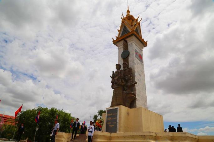 Đài tưởng niệm Quân tình nguyện Việt Nam hy sinh tại Campuchia, đặt tại công viên trung tâm thủ đô Phnom Penh - ảnh Tấn Đức