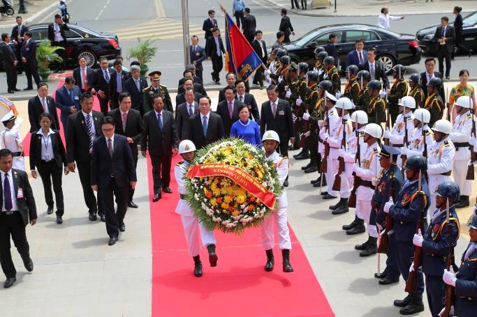 Cùng ngày, Chủ tịch nước và đoàn cấp cao Việt Nam đã tới đặt vòng hoa tại đài Độc lập và đặt vòng hoa tại Tượng đài Cố Quốc vương Campuchia, Norodom Sihanouk.