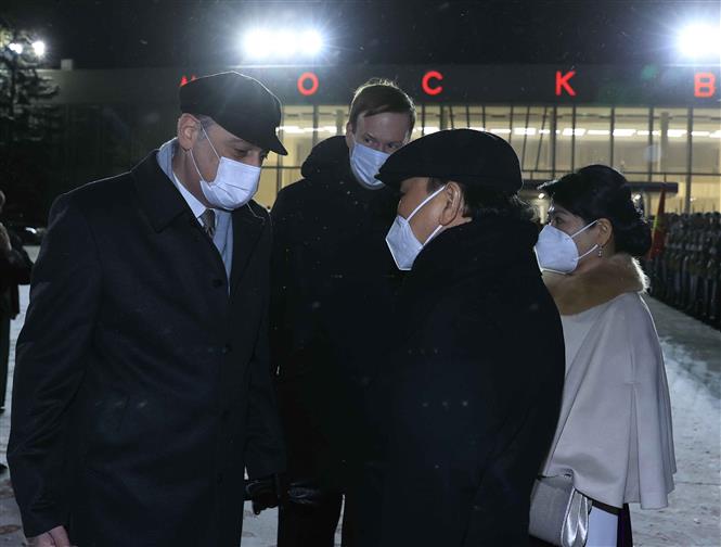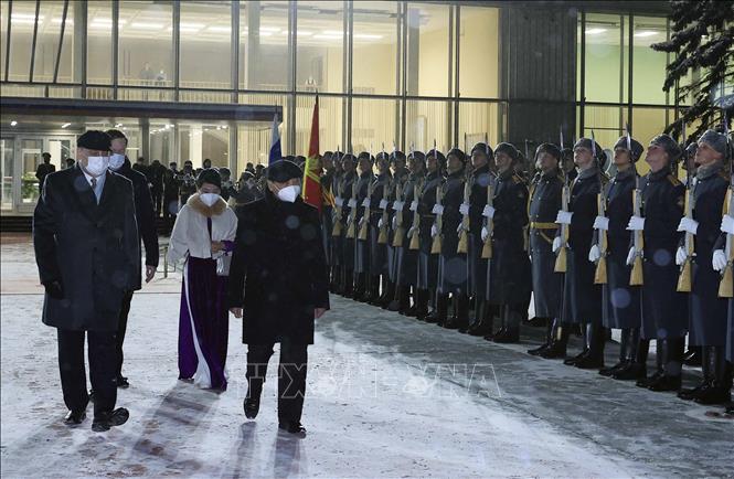 Lễ tiễn Chủ tịch nước Nguyễn Xuân Phúc và Phu nhân tại Sân bay Quốc tế Vnukovo, Thủ đô Moskva. Ảnh: Thống Nhất/TTXVN