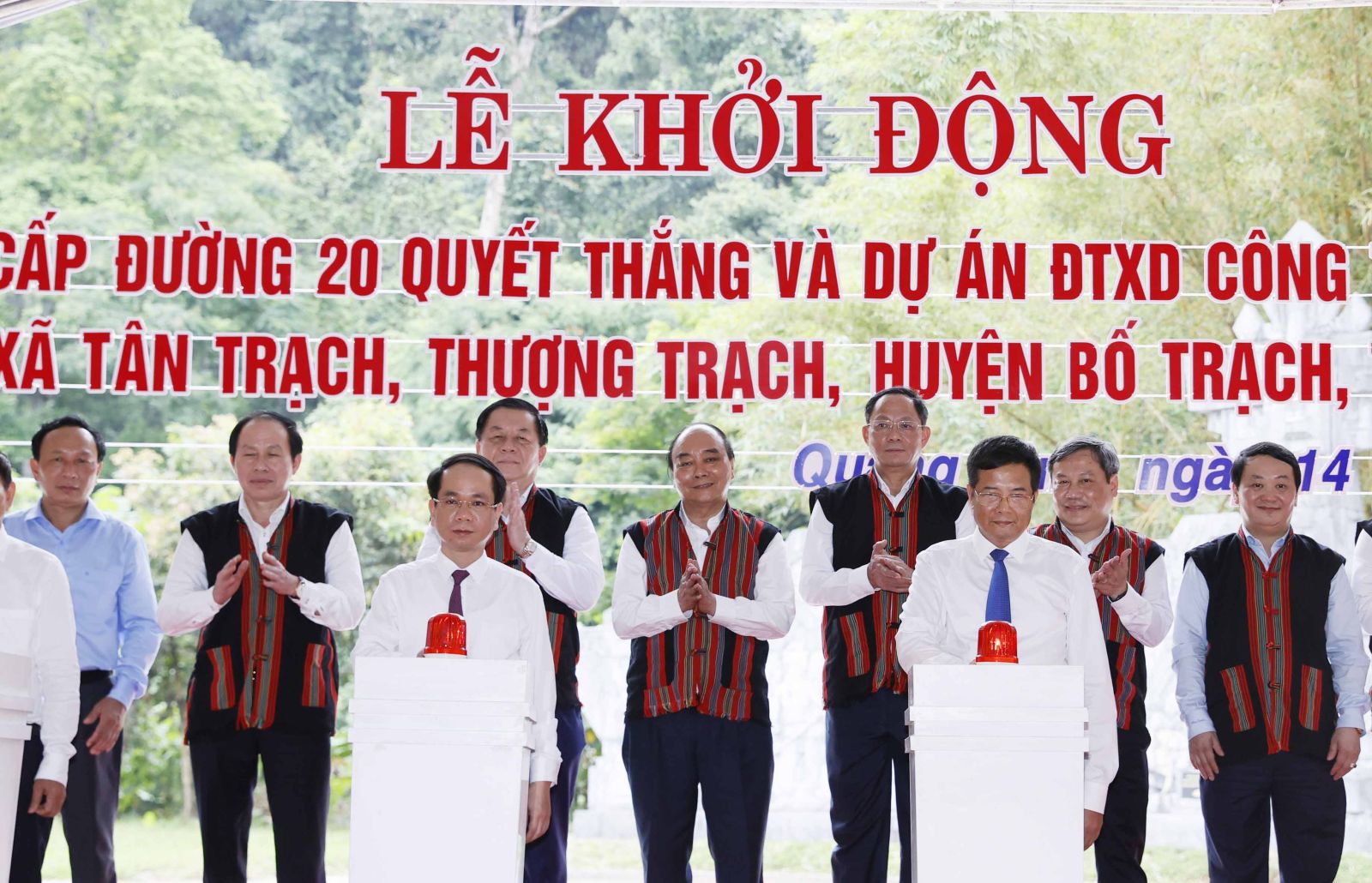 Chiều cùng ngày, Chủ tịch nước Nguyễn Xuân Phúc chứng kiến nghi thức khởi động Dự án nâng cấp Đường 20 Quyết Thắng và Dự án đầu tư xây dựng công trình cấp điện lưới cho các xã Tân Trạch, Thượng Trạch, huyện Bố Trạch, tỉnh Quảng Bình.