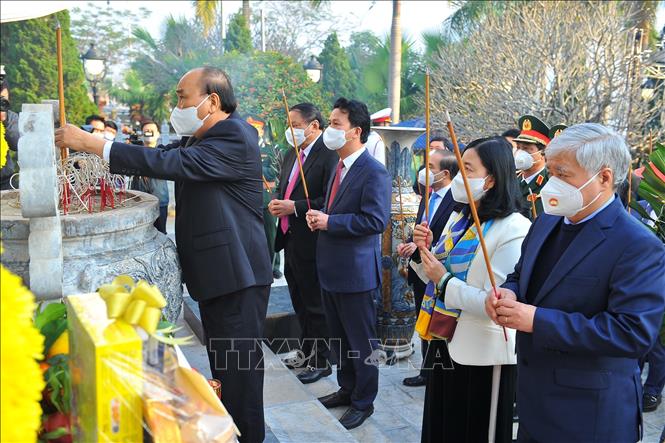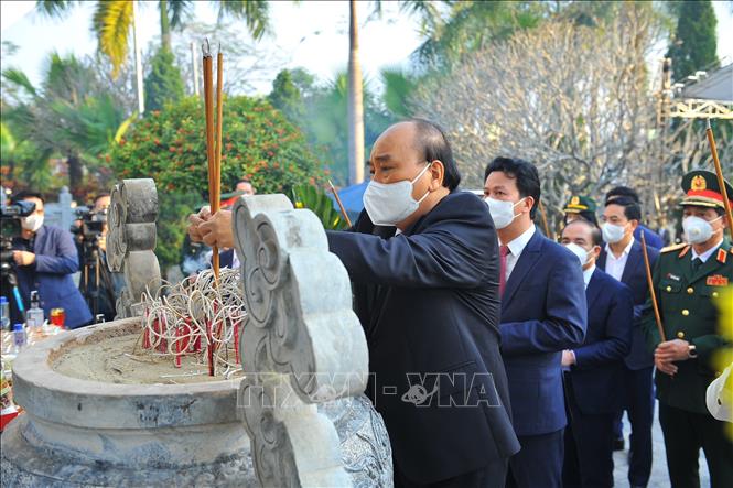 Chủ tịch nước Nguyễn Xuân Phúc dâng hương tưởng niệm các Anh hùng liệt sĩ.