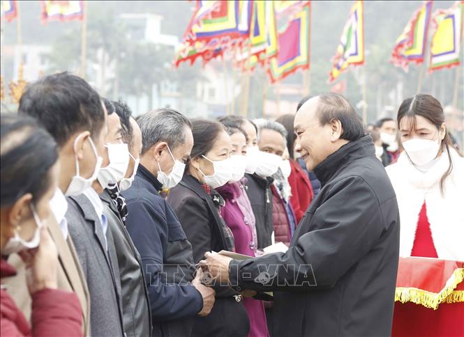 Chủ tịch nước Nguyễn Xuân Phúc mừng tuổi nhân dân tham dự Lễ Tịch điền Đọi Sơn.