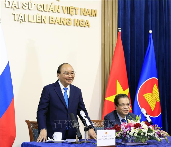 Phát biểu tại buổi gặp mặt, Chủ tịch nước Nguyễn Xuân Phúc cho biết, vừa có cuộc hội đàm rất thành công với Tổng thống Nga Vladimir Putin. Hai nhà lãnh đạo cùng nhau thảo luận tới 20 vấn đề hợp tác giữa hai nước. Các vấn đề thảo luận giữa hai nhà lãnh đạo đều có sự thống nhất cao, trong đó có nhiều vấn đề Việt Nam nêu ra đều nhận được sự ủng hộ, tán thành của Tổng thống Nga Putin. Hai nhà lãnh đạo nhất trí ra Tuyên bố chung về Tầm nhìn quan hệ Đối tác chiến lược toàn diện giữa Cộng hòa xã hội chủ nghĩa Việt Nam và Liên bang Nga đến năm 2030.