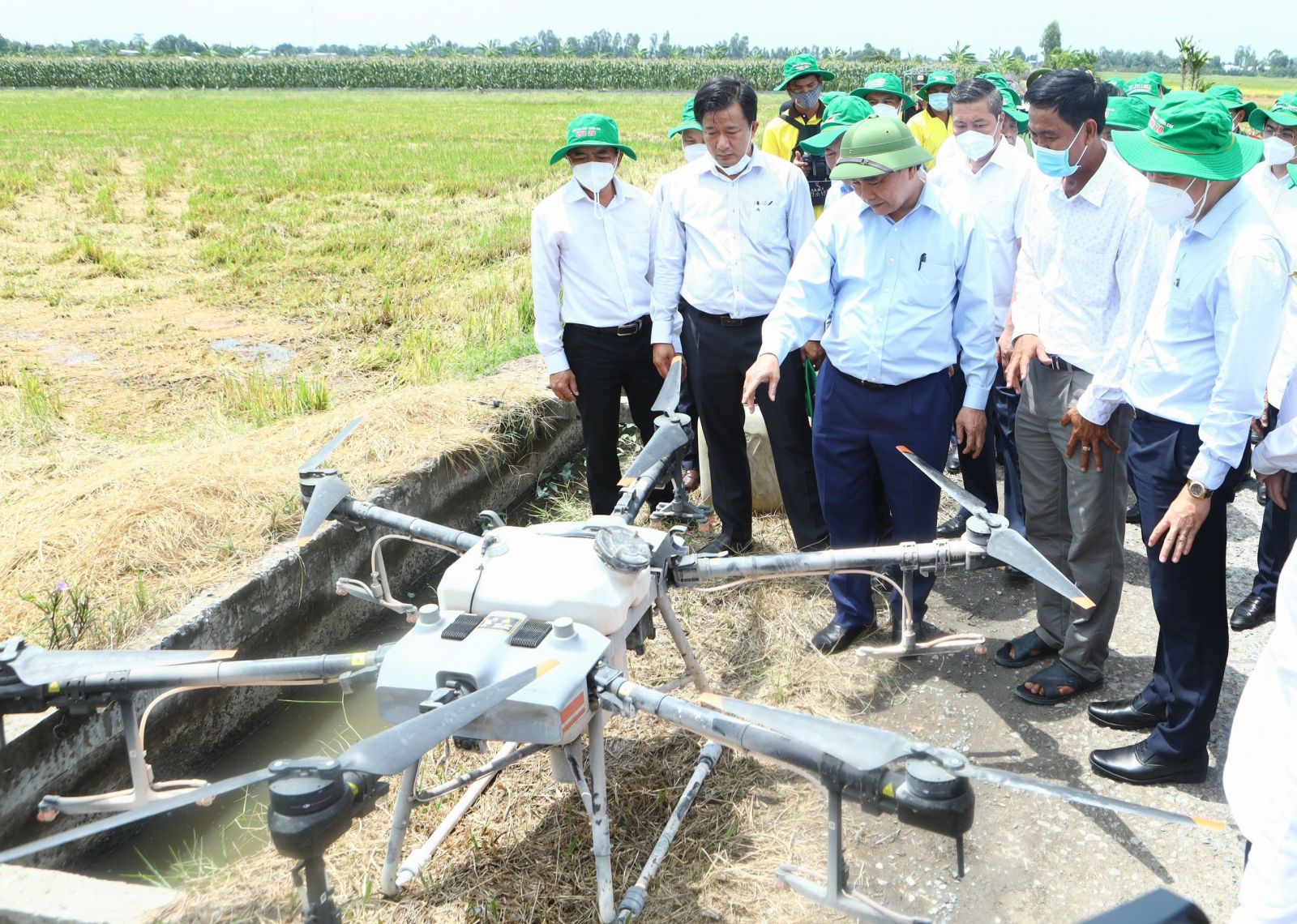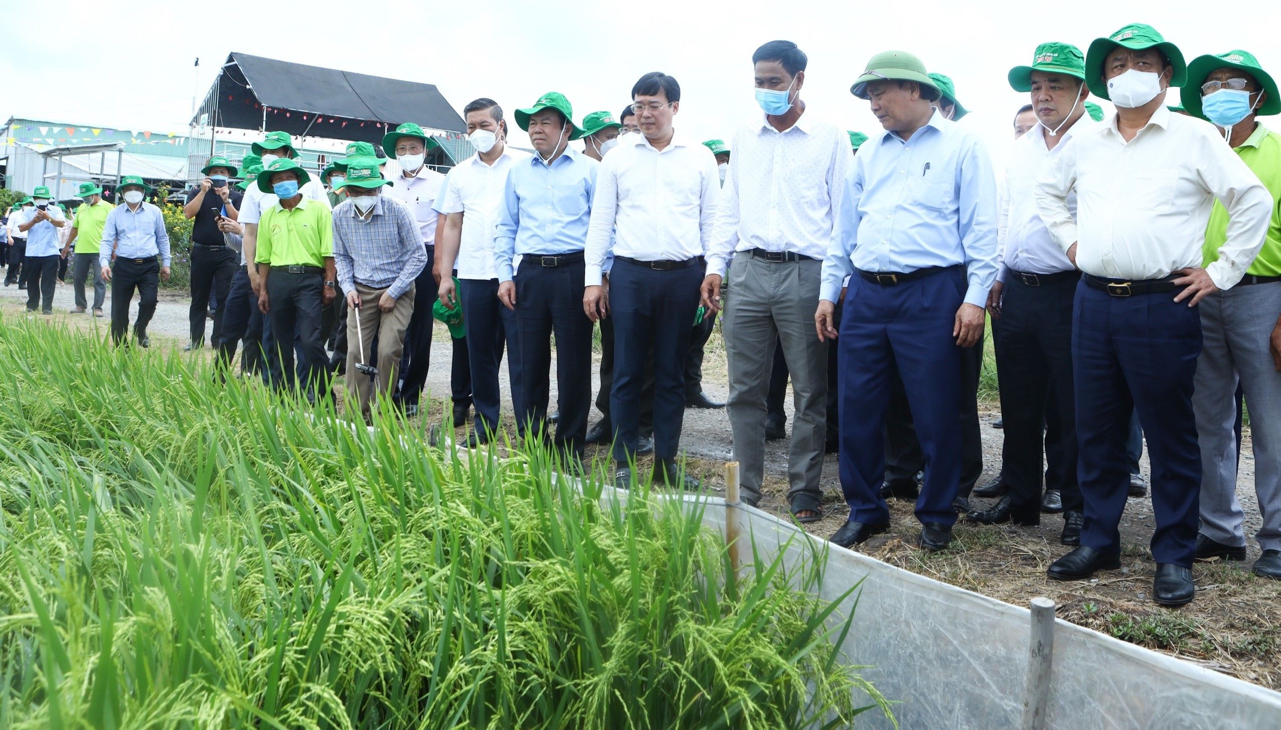 Thăm mô hình trồng lúa của Hợp tác xã Dịch vụ Nông nghiệp Mỹ Đông 2. Ảnh: VPCTN