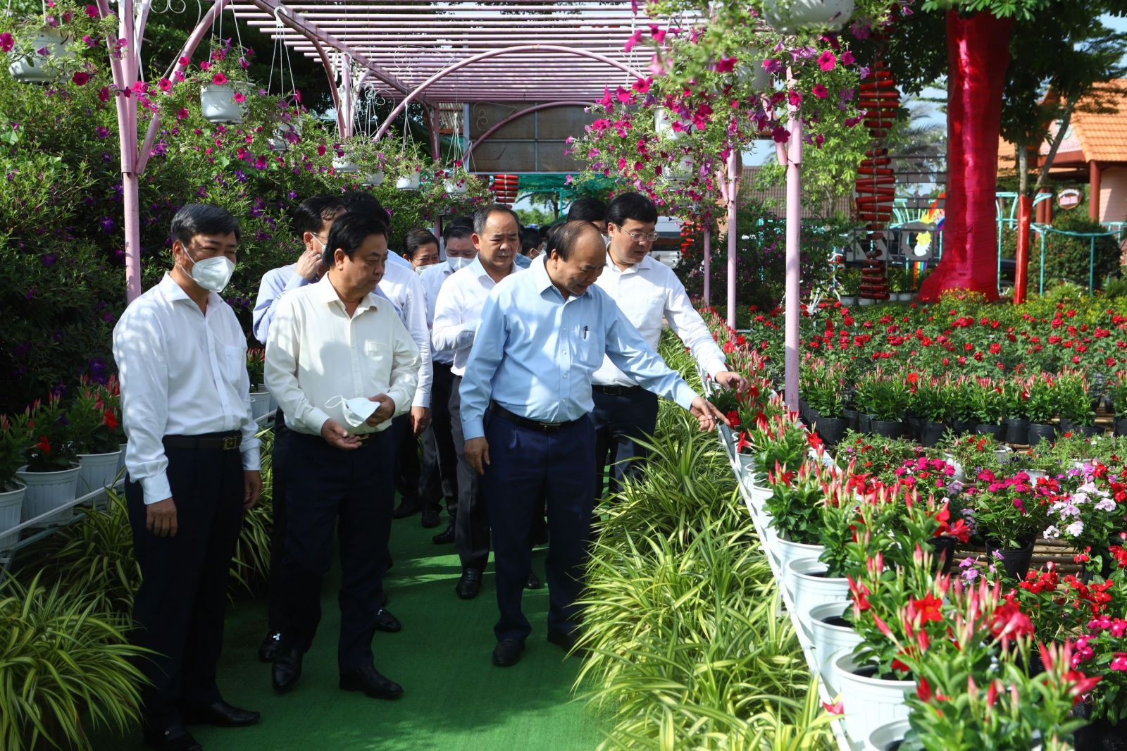Thăm mô hình sản xuất kinh doanh của Hợp tác xã Dịch vụ Nông nghiệp Mỹ Đông 2. Ảnh: VPCTN