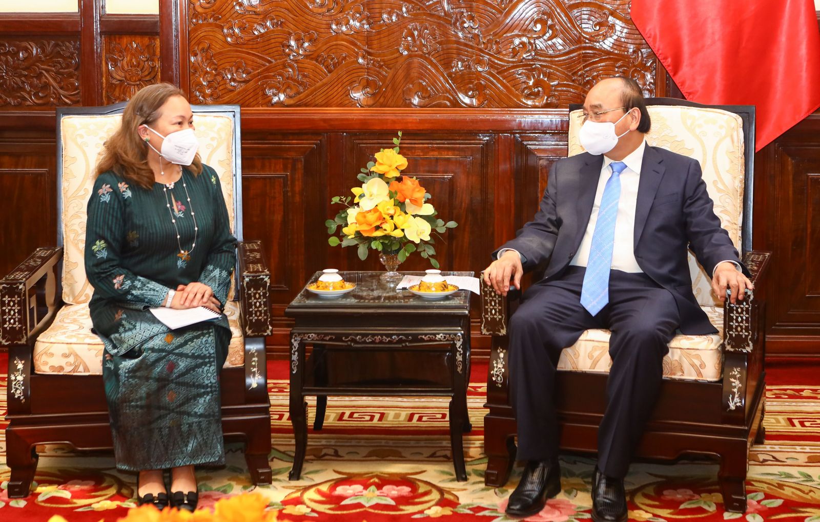 Tại buổi tiếp, Chủ tịch nước Nguyễn Xuân Phúc chúc mừng Đại sứ Dato Sharifah Norhana Syed Mustaffa đã hoàn thành tốt nhiệm kỳ tại Việt Nam và đánh giá cao những đóng góp tích cực của Đại sứ trong thúc đẩy quan hệ Đối tác chiến lược giữa hai nước thời gian qua. Quan hệ giữa hai nước đã không ngừng phát triển toàn diện trên các lĩnh vực, bất chấp những khó khăn của đại dịch Covid-19. Kim ngạch thương mại song phương ghi nhận tín hiệu tích cực; năm 2021 đạt 12,5 tỷ USD, tăng 25,5% so cùng kỳ năm 2020.