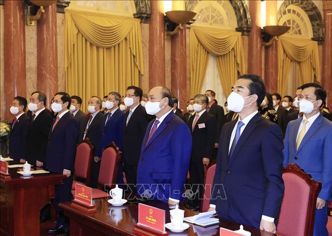 Chủ tịch nước Nguyễn Xuân Phúc và các đại biểu thực hiện nghi lễ chào cờ.