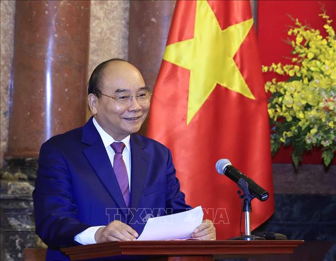 Chủ tịch nước Nguyễn Xuân Phúc phát biểu, giao nhiệm vụ cho các đại sứ, trưởng cơ quan đại diện Việt Nam tại nước ngoài.