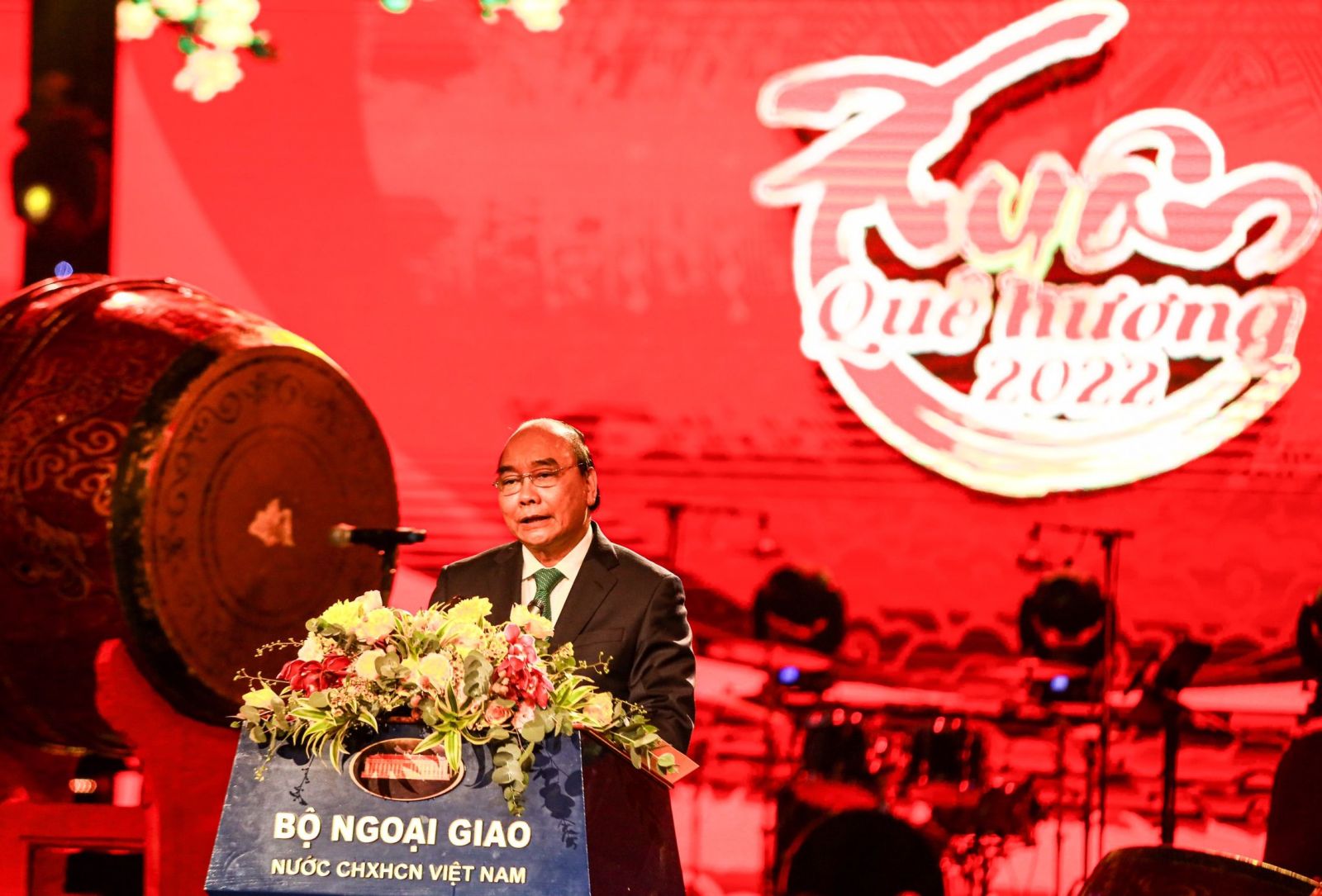 Thay mặt lãnh đạo Đảng, Nhà nước, Ủy ban Trung ương Mặt trận Tổ quốc Việt Nam, nhân dịp đón năm mới Nhâm Dần, Chủ tịch nước Nguyễn Xuân Phúc gửi những tình cảm thân thương, lời thăm hỏi chân tình và lời chúc mừng năm mới tốt đẹp nhất tới các đại biểu, bà con kiều bào dự chương trình Xuân Quê hương năm 2022 cùng toàn thể đồng bào cả nước, đồng bào đang sinh sống, làm việc và học tập ở nước ngoài.