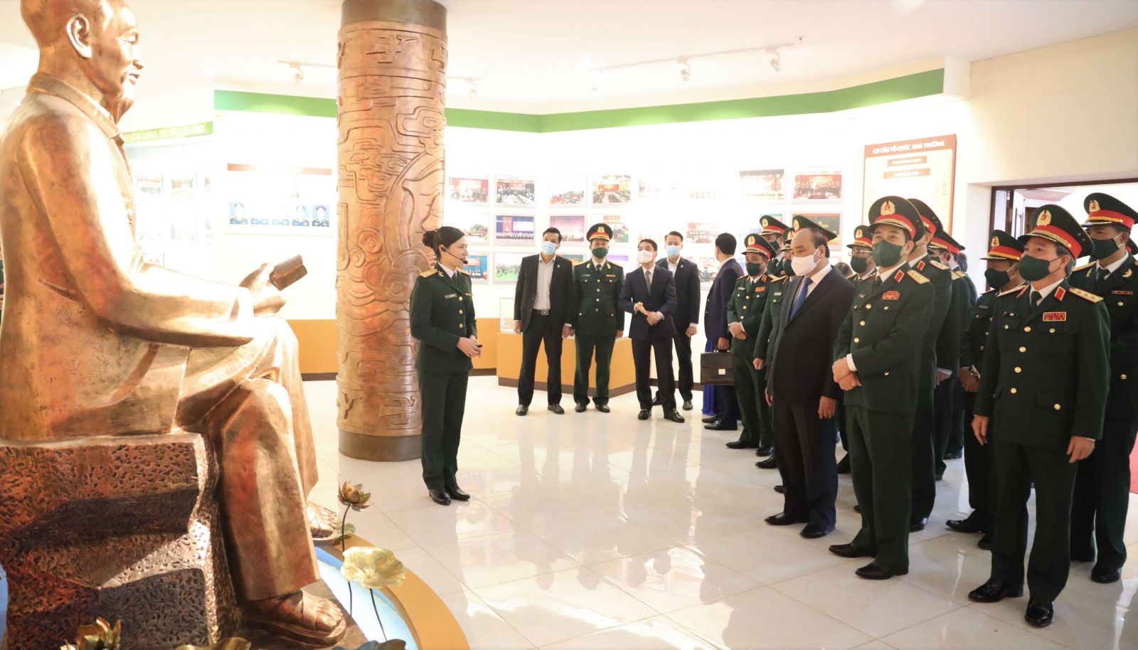 Thăm phòng truyền thống nhà trường. Ảnh Vân Anh/VPCTN