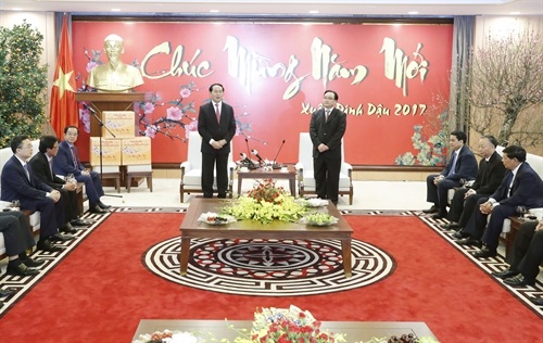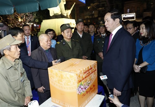 Đến thăm và chúc Tết Đảng bộ, chính quyền và nhân dân Thủ đô Hà Nội, Chủ tịch nước Trần Đại Quang chúc mừng Đảng bộ, chính quyền và nhân dân Thủ đô đã nỗ lực phấn đấu, hoàn thành hầu hết các chỉ tiêu được Trung ương giao; kinh tế-xã hội phát triển rõ rệt, cơ cấu kinh tế chuyển dịch đúng hướng, các lĩnh vực hạ tầng cơ sở được chỉ đạo giải quyết quyết liệt, mang lại hiệu quả rõ nét.