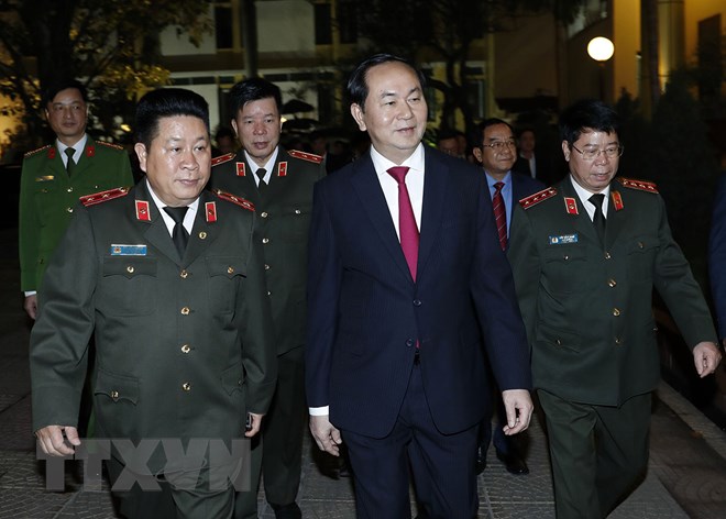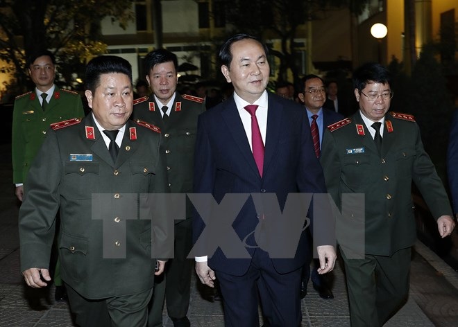 Chủ tịch nước Trần Đại Quang biểu dương công tác đảm bảo trật tự an toàn xã hội của Thủ đô năm 2016; nhấn mạnh đây là điều kiện quan trọng để Hà Nội thực hiện thắng lợi các nhiệm vụ kinh tế-xã hội, góp phần vào những thành tựu chung của đất nước.