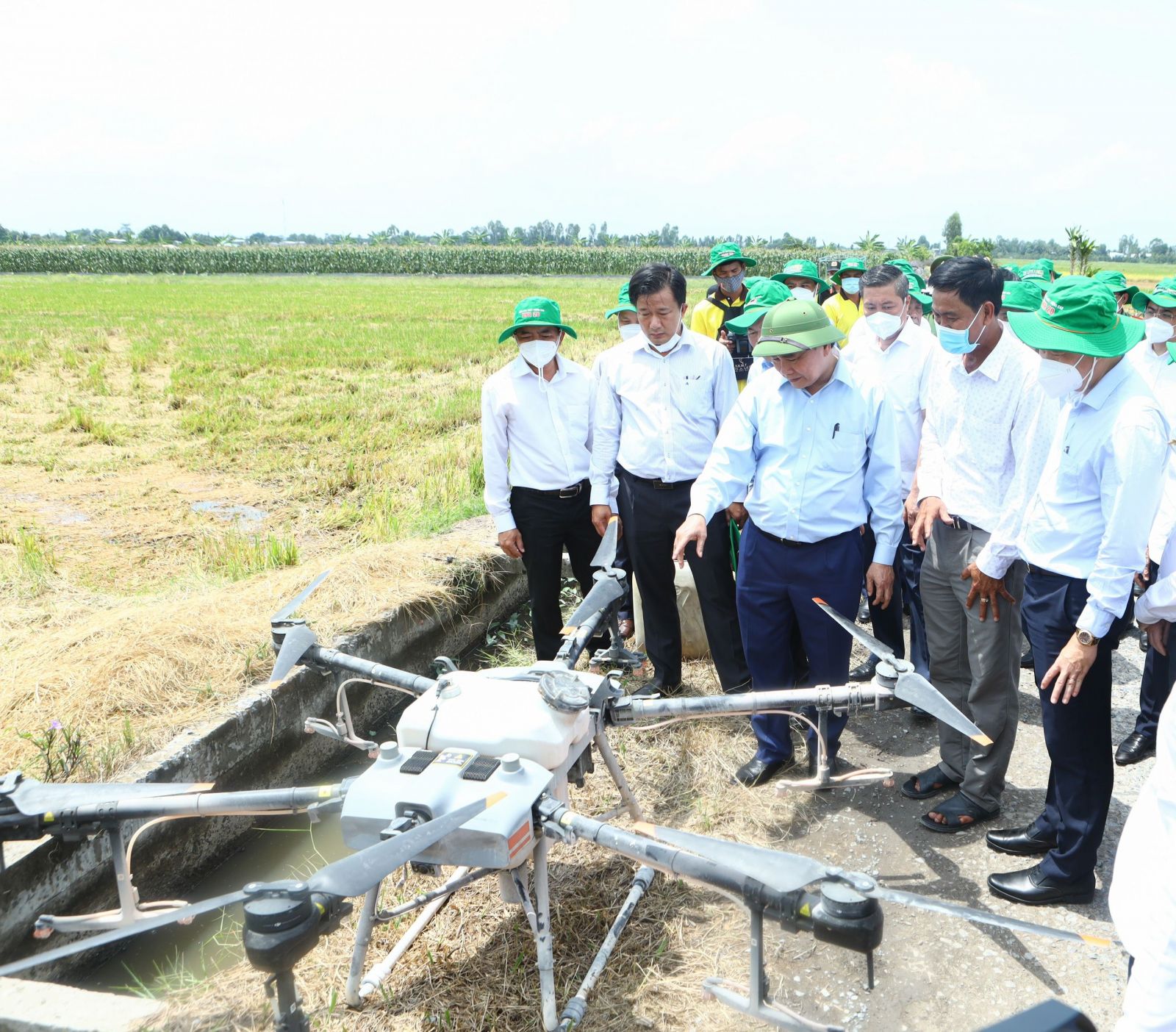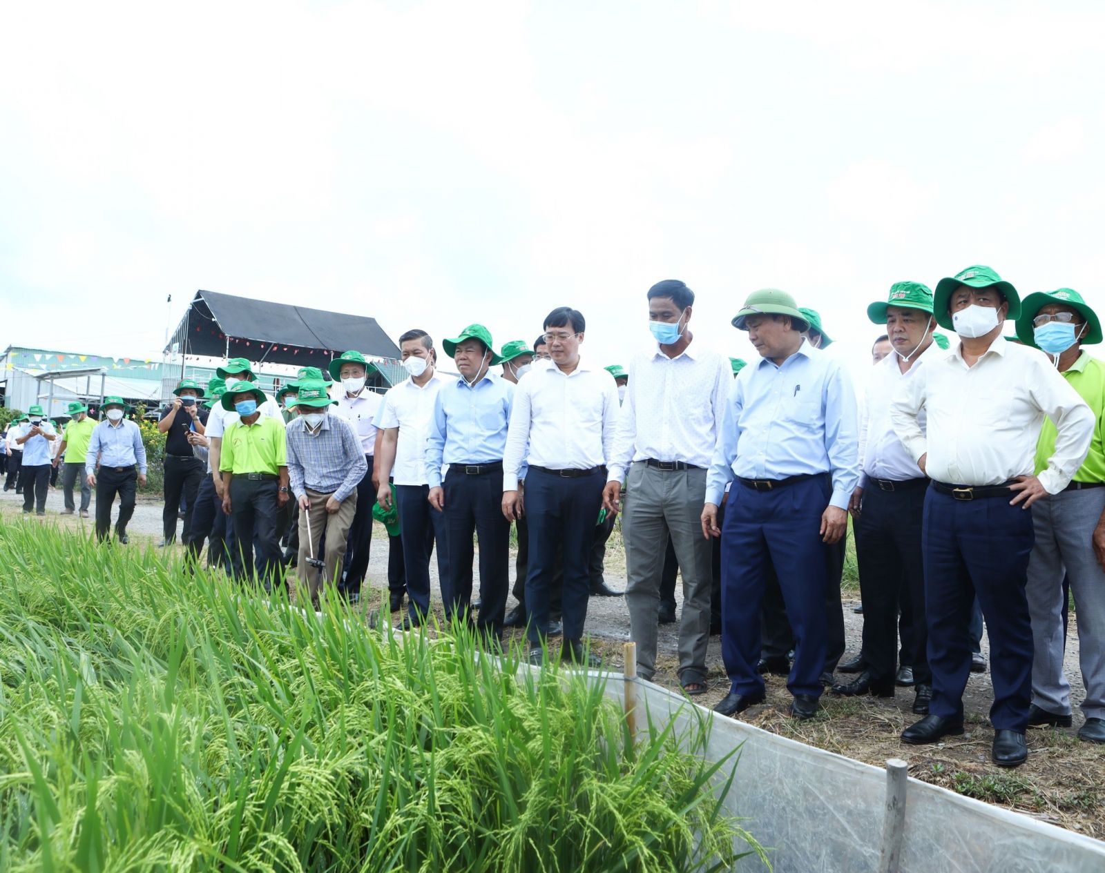 Thăm mô hình trồng lúa của Hợp tác xã Dịch vụ Nông nghiệp Mỹ Đông 2. Ảnh: VPCTN