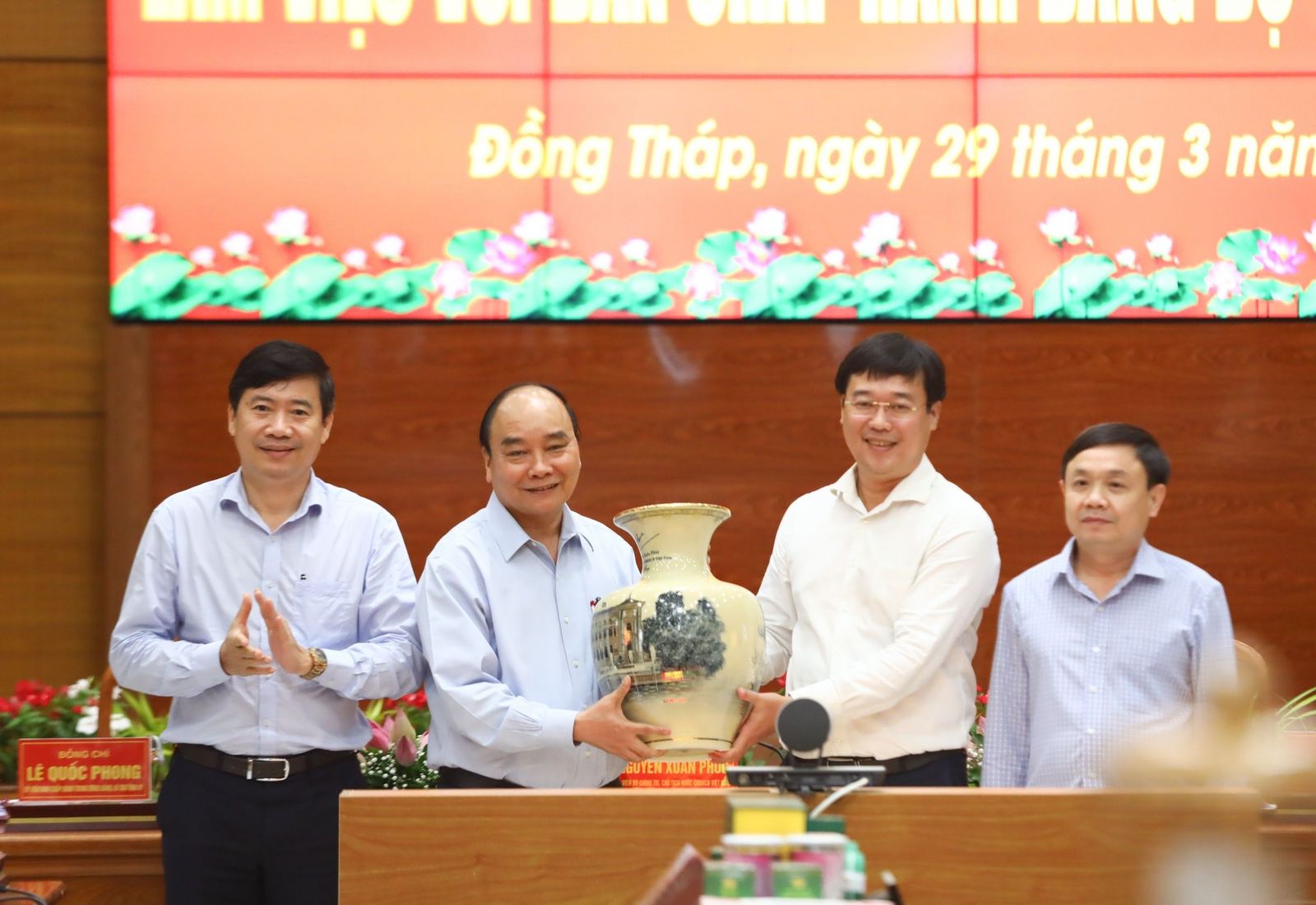 Phát biểu tại buổi làm việc, Chủ tịch nước Nguyễn Xuân Phúc ghi nhận những kết quả tỉnh Đồng Tháp đã đạt được, kinh tế ngày càng phát triển, diện mạo nông thôn thay đổi tích cực, hạ tầng đô thị phát triển, tỷ lệ hộ nghèo giảm còn 1,36%... Đáng chú ý, tỉnh tích cực cải thiện môi trường đầu tư kinh doanh, liên tục đứng trong top dẫn đầu cả nước thông qua PCI, trong đó có nhiều tập đoàn kinh tế lớn đã và đang tìm hiểu đầu tư tại địa phương. Đồng Tháp cũng làm tốt công tác phòng, chống dịch bệnh Covid-19; tình hình an ninh, trật tự an toàn xã hội ổn định; công tác xây dựng Đảng được quan tâm, đoàn kết trong Đảng, uy tín của Đảng ngày càng được nâng cao.