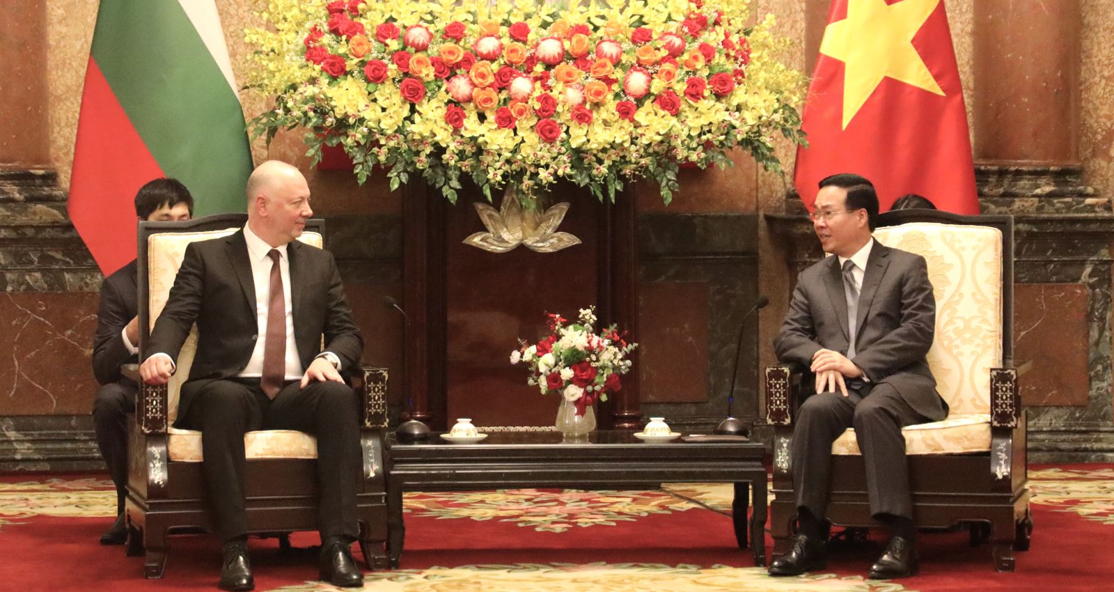 Chủ tịch nước vui mừng nhận thấy hai nước thường xuyên duy trì các hoạt động tiếp xúc, trao đổi đoàn các cấp, đặc biệt cấp cao. Mới đây nhất là chuyến thăm Bulgaria của Chủ tịch Quốc hội Vương Đình Huệ vào tháng 9/2023. Chủ tịch nước tin tưởng, chuyến thăm Việt Nam lần này của Chủ tịch Quốc hội Bulgaria sẽ tạo động lực thúc đẩy quan hệ truyền thống Việt Nam - Bulgaria; đồng thời là dấu mốc quan trọng khởi đầu cho nhiều sự kiện mà hai nước sẽ tổ chức để kỷ niệm 75 năm thiết lập quan hệ ngoại giao (1950-2025), qua đó tăng cường thúc đẩy đưa quan hệ hai nước lên tầm cao mới.