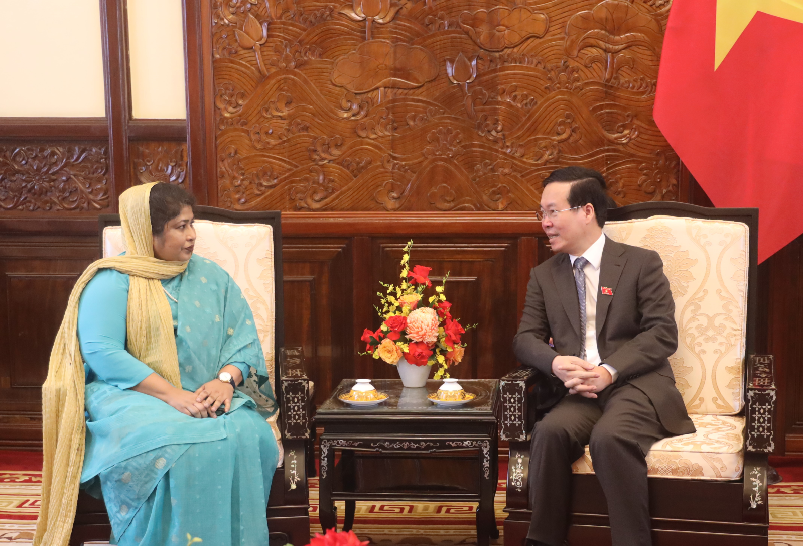 Trân trọng và cảm ơn Đại sứ Samina Naz dành những tình cảm, đánh giá tốt đẹp về Việt Nam, Chủ tịch nước Võ Văn Thưởng nhấn mạnh, Việt Nam và Bangladesh có mối quan hệ truyền thống lâu đời. Bangladesh là một trong số ít các quốc gia ở khu vực Nam Á thiết lập quan hệ ngoại giao sớm với Việt Nam, cách đây 50 năm.