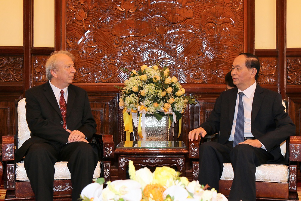 Chủ tịch nước Trần Đại Quang tiếp Đại sứ Bulgaria tại Việt Nam Evgueni Stefanov Stoytchev đến chào từ biệt nhân kết thúc nhiệm kỳ công tác. (Ảnh: VPCTN)