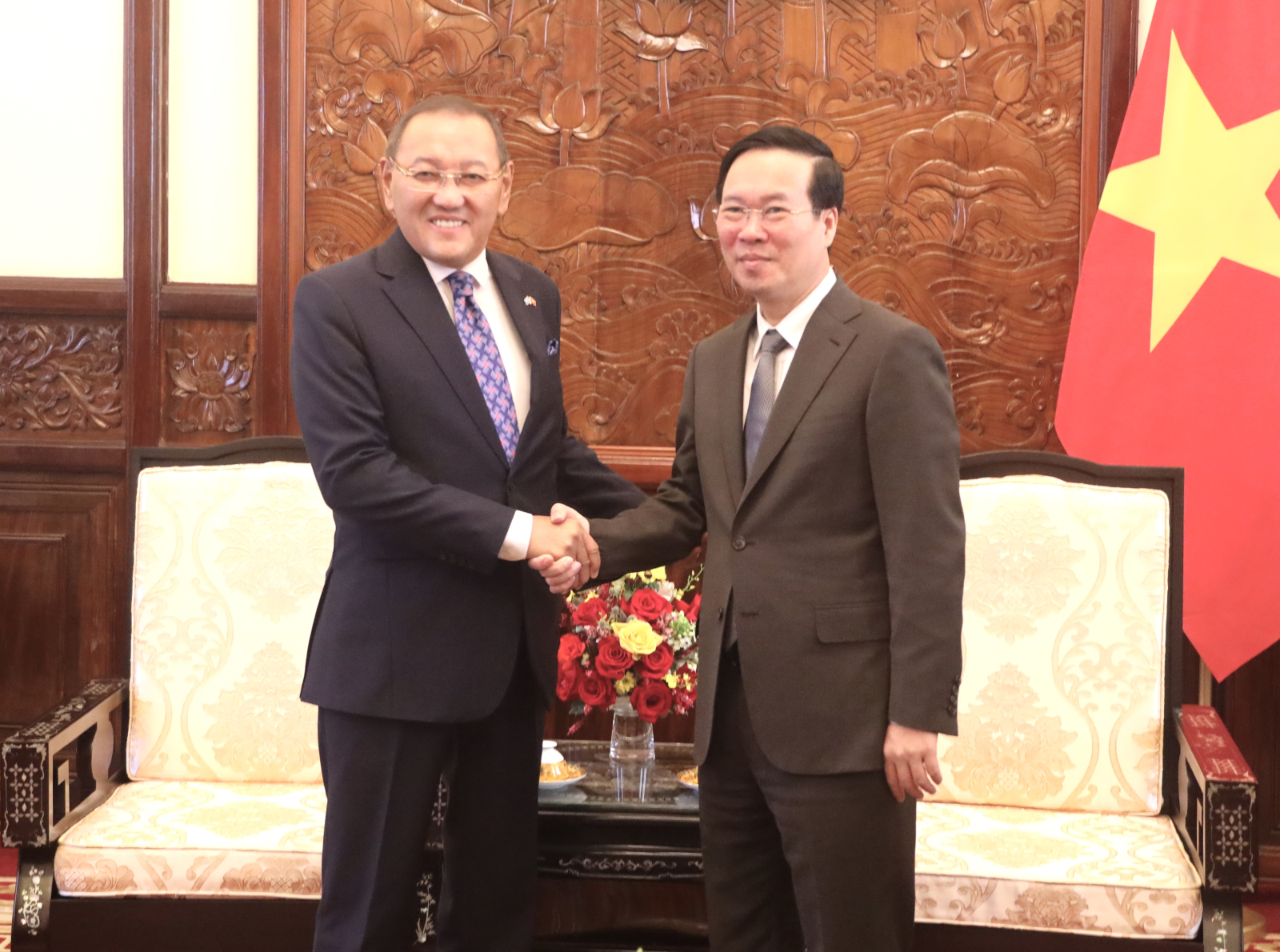 Chủ tịch nước Võ Văn Thưởng tiếp Đại sứ Kazakhstan. Ảnh: VPCTN