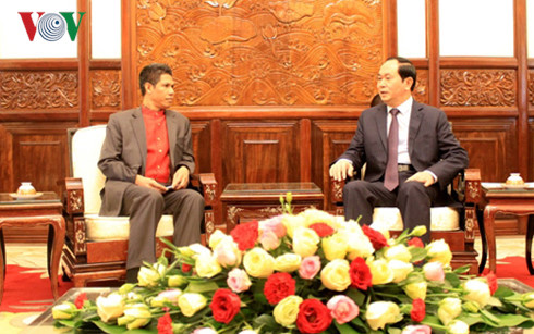 Chủ tịch nước Trần Đại Quang tiếp Ngài Jorge Trindade Neves De Camoes, Đại sứ Đặc mệnh toàn quyền Timor-Leste. (Ảnh: VOV)